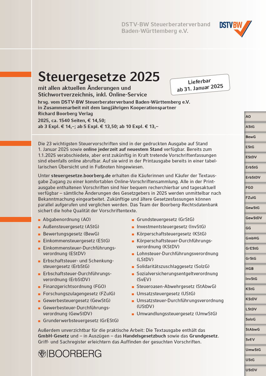 hrsg. vom DSTV-BW Steuerberaterverband Baden-Württemberg e.V. in Zusammenarbeit mit dem langjährigen Kooperationspartner Richard Boorberg Verlag